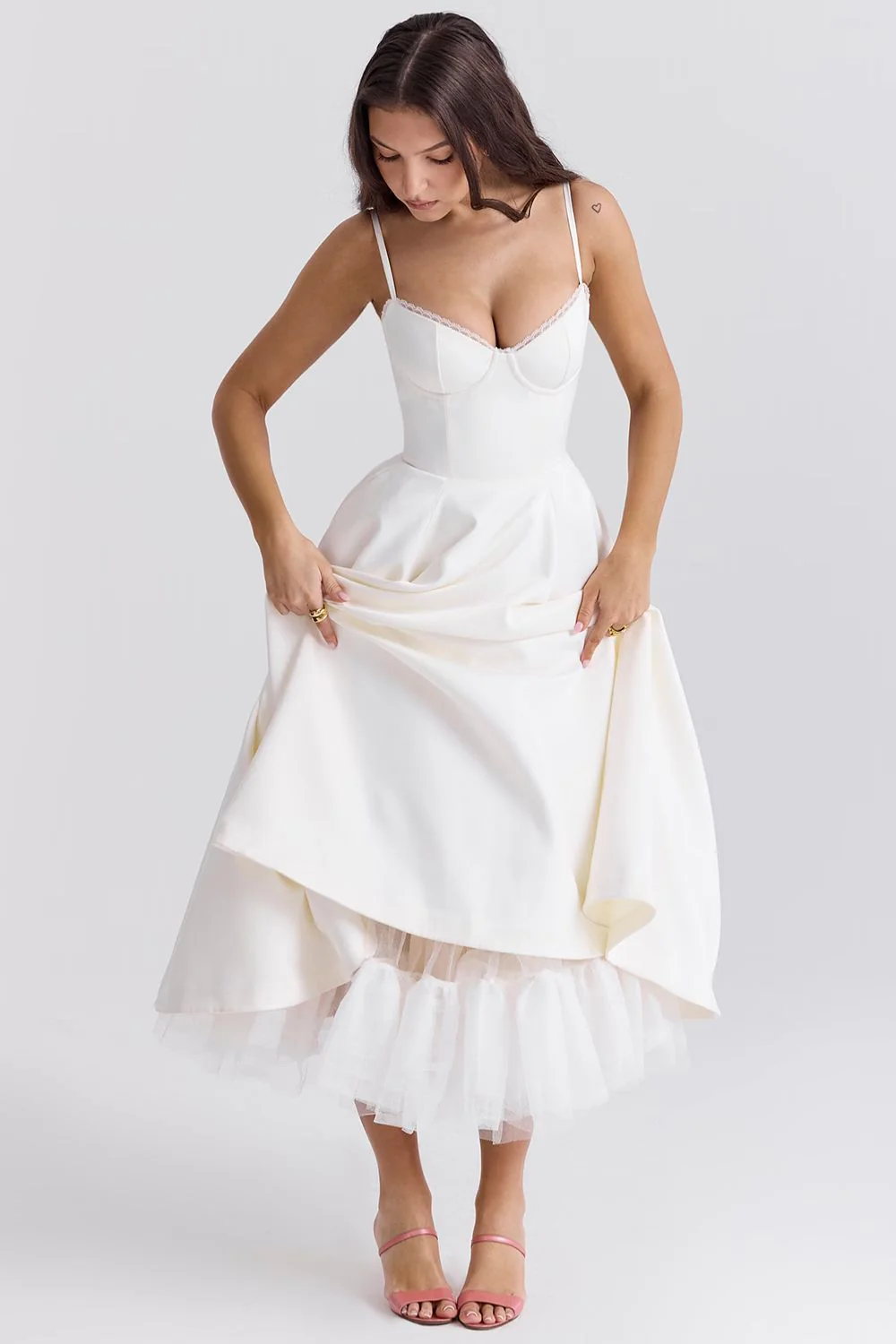 Step into a world of effortless charm and sophistication with the Cordelia Delicate Tulle Accent Dress. Designed to make you feel confident, graceful, and radiant, this dress blends classic elegance with modern femininity. Whether you're attending a special event or simply indulging in a moment of self-expression, Cordelia ensures you stand out beautifully.
