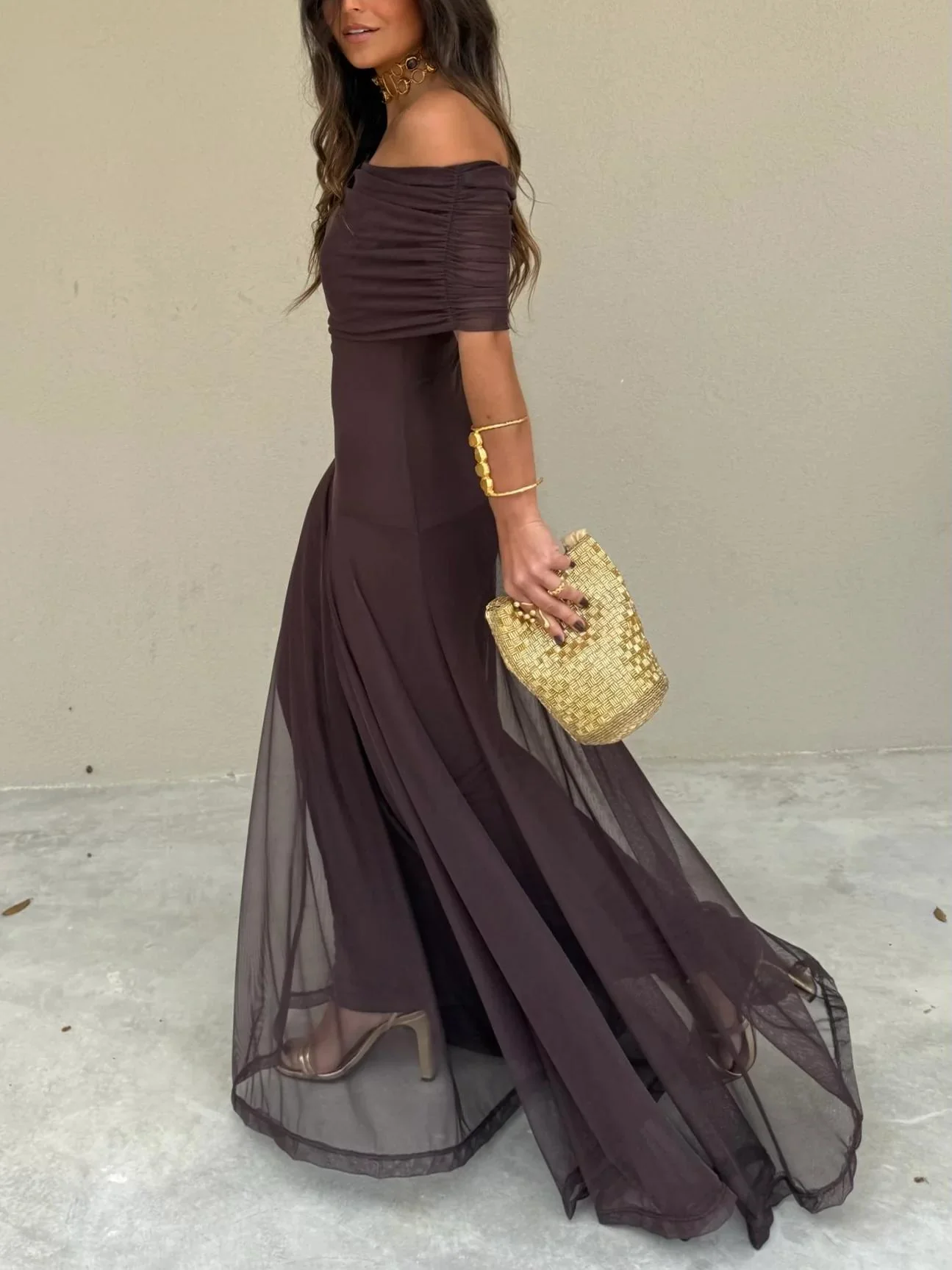 Flowy chiffon fabric drapes beautifully, offering effortless movement whether you’re dancing or strolling under the moonlight.